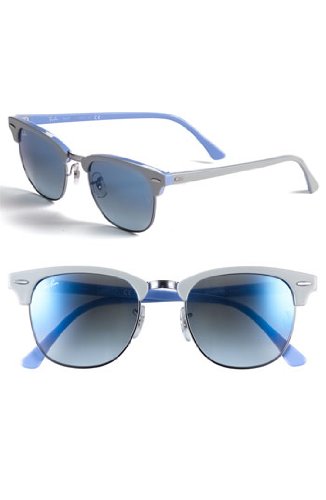 Review Ray-Ban Clubmaster Sunglasses Grey Brow RB3016 11023Q 51 51 Sky Blue Crystal Green Mirror